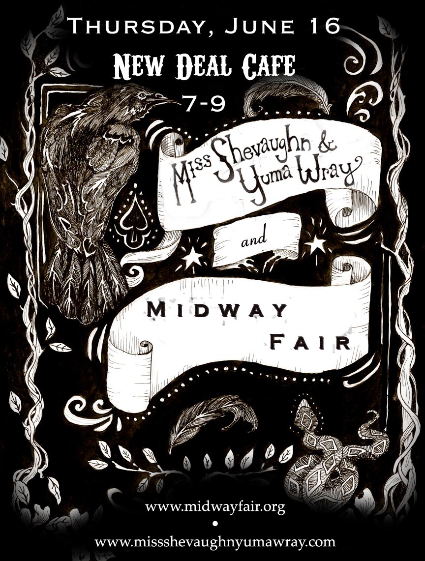 I’ve decided to do four really big shows this year, and we’ll largely take it easy otherwise. All four will have an original poster commissioned from a local artist. And we’re going to do something at each of the shows to show off some form of art—not just music. The birthday dinner is food, but maybe there will be another surprise. October will be literary arts, something near and dear to my English major heart. I have a kernel of an idea for winter, but I don’t want to put it out there until it’s grown into a mighty . . . um . . . stalk of corn.