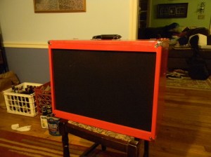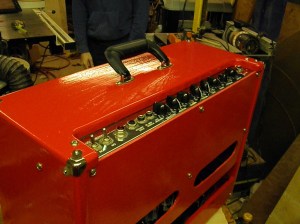 The cabinet is mostly a replica of the Hot Rod Deluxe’s original housing, but it’s solid poplar, so it’s about 8 pounds lighter, and, well, the finish sure is spiffier than black or tweed. If you’re interested in knowing all the steps in building the amp, I made a build thread over on the gear page.